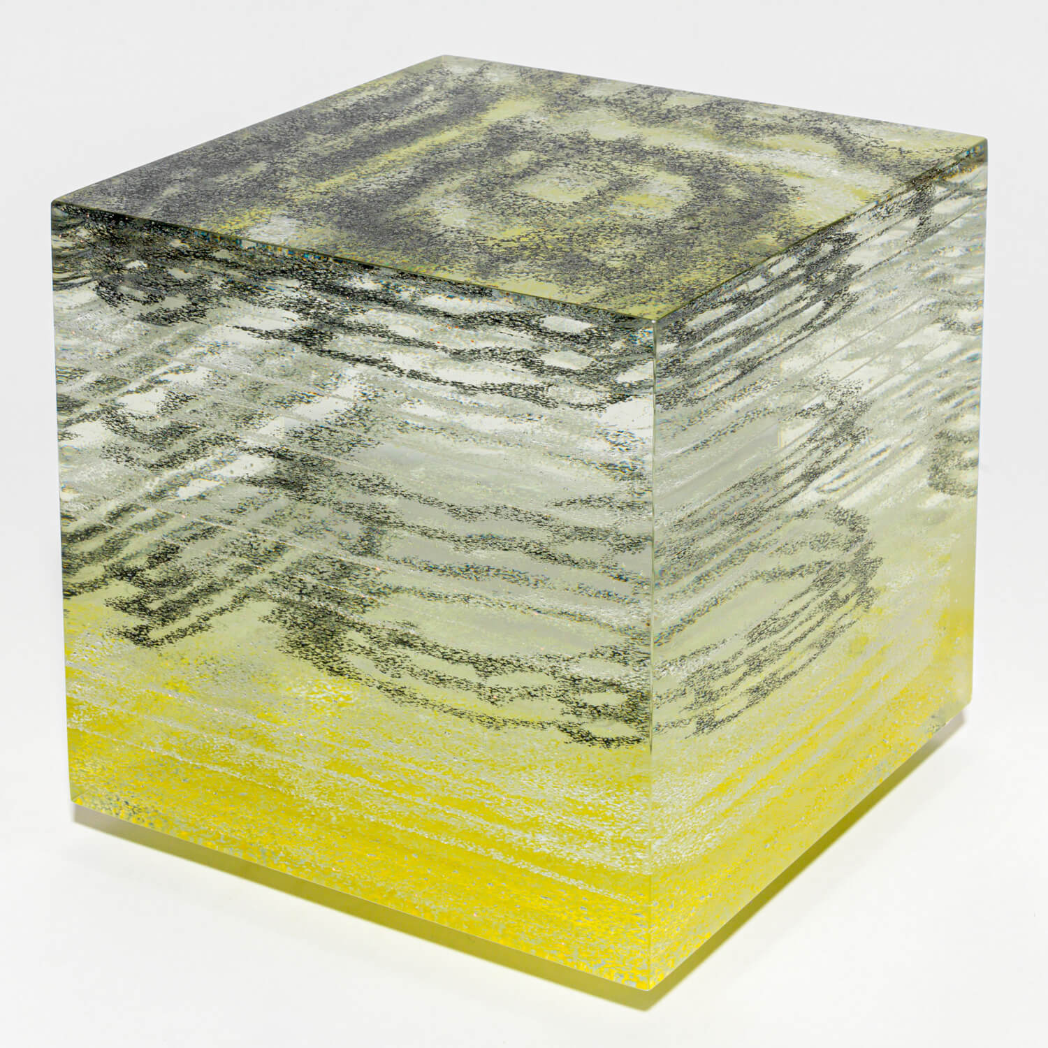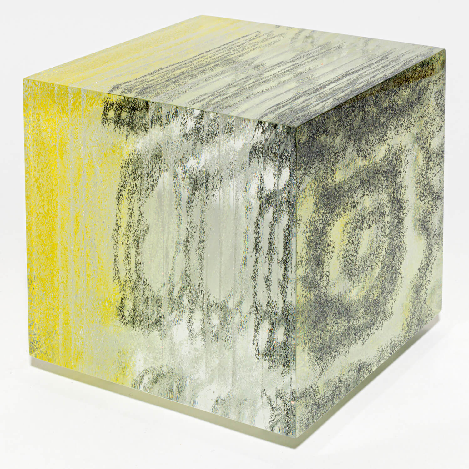 Werke Werkverzeichnis G Nr.XVIa | Glasobjekt - 20 Glasplatten gestippt, emailliert und verschmolzen | 2019 | H 20cm B 20cm T 20cm 1. Ansicht 2. Ansicht 3. Ansicht
